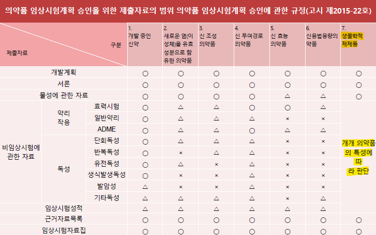 - 신청자가 직접 수행하지 않은 자료들을 제출서류로 활용할 수 있는 부분이 있어 신약에 비해 적은 자료를 제출함