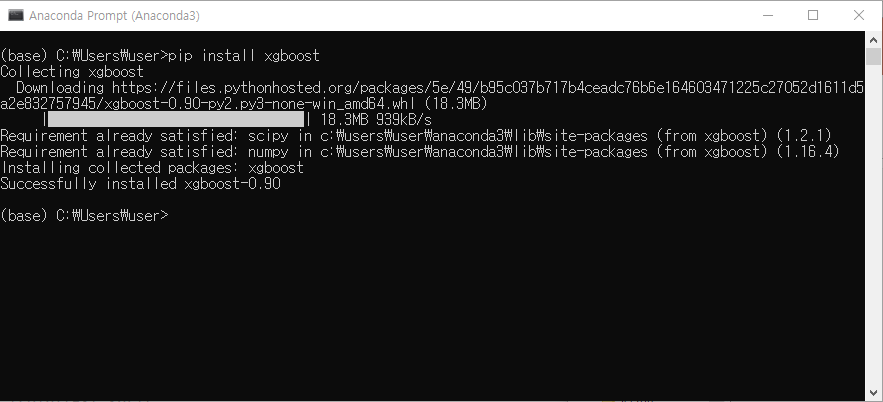 - 'Anaconda Prompt'에서 'pip install xgboost' 입력