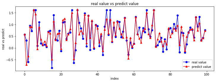 chart.plot(y_pred[:100], marker='^', color='red', label='predict value')