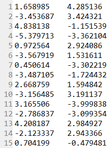 rows.append(row) # [['1.658985', '4.285136'], .... ]