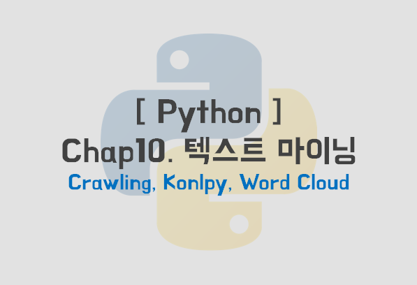 | [Python 머신러닝] 10장. 텍스트 마이닝 - (1) 크롤링 (Crawling) (0) | 2019.10.31 |